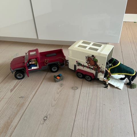 Generelt i god stand, min datter sælger ud af sit Schleich. Hun har tjekket alle dele meget gerne skulle være der, men vi har ikke længere manualen (hvis man ønsker den, er de tilgængelige på Schleichs hjemmeside.