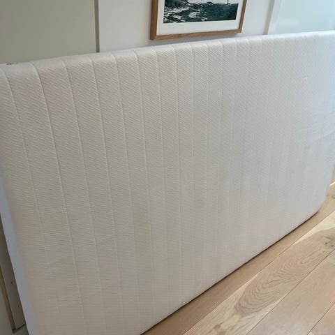 1 år gammel skummadras fra Jysk. Måler 190×70×11. Der medfølger en tilhørende ældre sengeramme. Sengen er skilt ad nu.