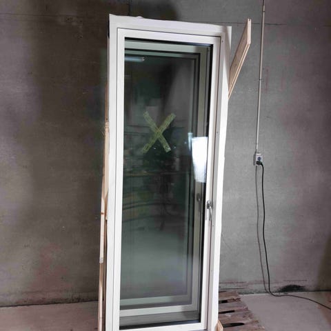 Terrassedør 82,5x228cm i træ/alu. 3-lags energirude, lavt glasfiberbundstykke og 3-punktslås. Åbner højre ud. Produceret af VINDUNOR. Har monteringshuller og tilbage siddende monterings materiale. Nyere prøvemonteret dør. Dimension B:82,5 X H:228 X D:15,5cm