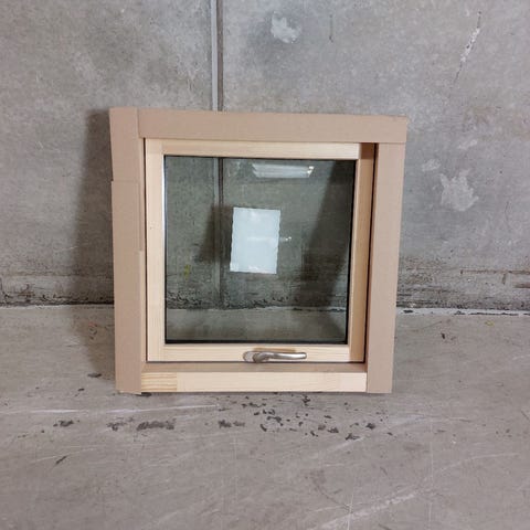 Topstyret vindue 60x60cm i lakeret fyrretræ med 2-lags energirude og alu bundglasliste. Vinduet har været prøvemonteret og har rester af monterings materiale og monteringshuller. Det er en nyere returvare, produceret i slutningen af 2025. Dimension B:60 X H:60 X D:11,5cm