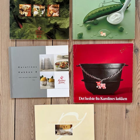 De klassiske kogebøger fra Karolines - serien, bind 1 til 8. Den første er godt brugt og intakt, de efterfølgende er rigtig pæne.
