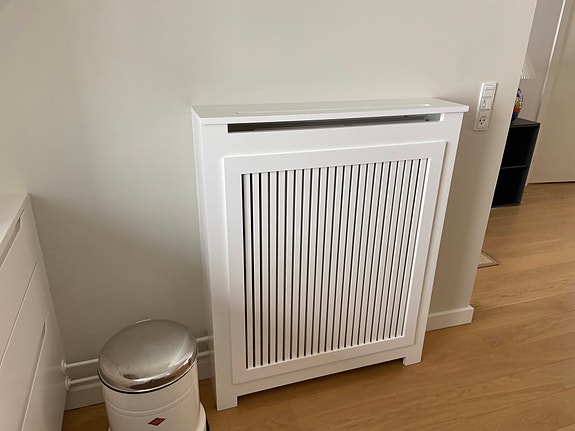 Fodlisten bliver bygget ind i bænken så den går helt ind til væggen. Bænken er med vippelåg og med valgfri ruminddeling.