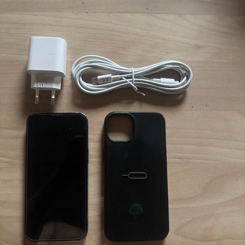 iPhone 13. Smadret bagglas. Trådløs opladning virker stadig. Cover til at skjule det medfølger.