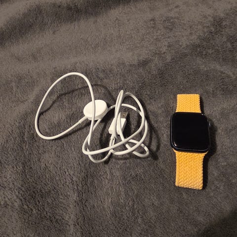 Apple watch series 6 med cellular den er 44mm og sort den er fra 31/1-2022 den fejler ikke noget virker fint.