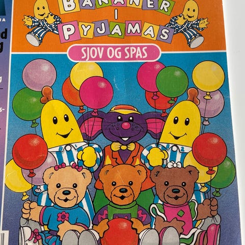 Bananer i pyjamas iført blå og hvide stribede pyjamas. Produktet består af to bamser i forskellige størrelser. Materiale og yderligere specifikationer er ikke oplyst. En på 40 cm. Og en på 30 cm.