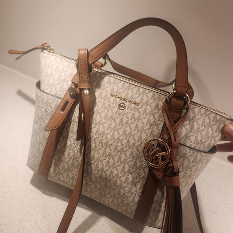 Michael Kors Kvinde taske i andre materialer i lyserød farve. Tasken har to håndtag og en aftagelig skulderrem. Indvendigt er der flere rum til opbevaring, herunder et lynlåslomme. Tasken er velegnet til daglig brug og kan rumme personlige ejendele.