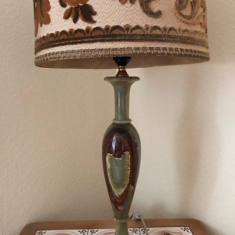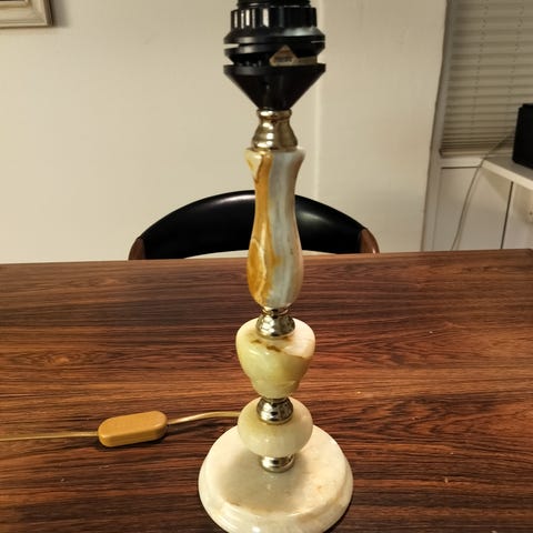 Smuk Onyx Marmor Bordlampe med original ledning og lamoehat. Lampehstteber funktionel men også Gammel og brugt. Resten af kampen er smuk og fejlfri. Virkeligt et kunstværk I Onyx.