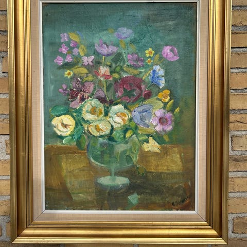 Vintage Mid-Century Floral Oil Painting - Signed L. Delvig