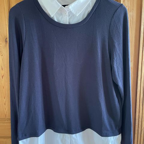 Karrygul skjorte med krave og fine detaljer. Str. L.