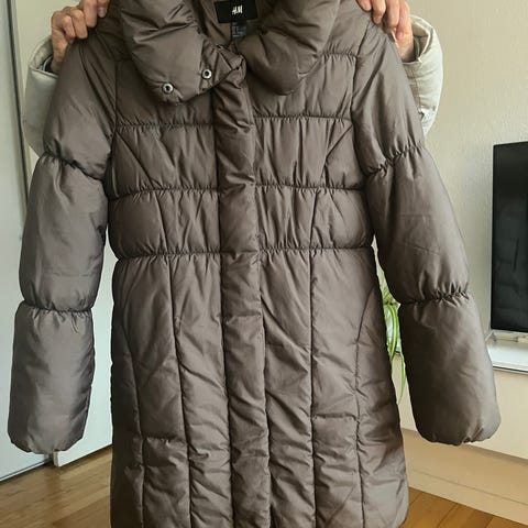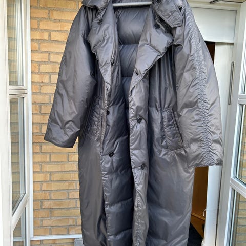 Sort lang figursyet dynefrakke,- brugt en gang, for lille i størrelse er ligesom ny