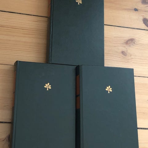 Pænt sæt i hardcover med smudsomslag med nogle mindre rifter i kanten men er ellers generelt pænt.