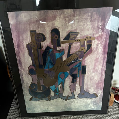 Joel Davitz maleri af musikere med pæn sølvramme