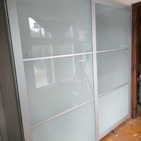 Skydedøre til pax garderobeskab, alle skruer, beslag og skinner medfølger.