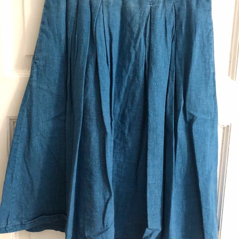 Superfin og let nederdel i en smuk støvet grøn farve. Nederdelen har elastik og snøre i taljen, hvilket giver en behagelig og fleksibel pasform. Fine flæsedetaljer i bunden for et feminint touch.