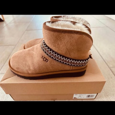 UGG originale støvler i ægte læder med lækker uld indvendigt. Model BUTTON BOOT. Str. 37. Farve: Walnut. Støvlerne har aldrig været brugt. Støvlerne er små i str, så køb et nr. større end du plejer.