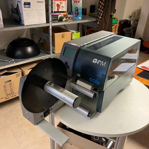 Epson TM-C3500 labelprinter med funktioner til farveprint og vedligeholdelsesbokse. Enheden er designet til effektiv labelproduktion og inkluderer tilbehør som vedligeholdelsesbokse.