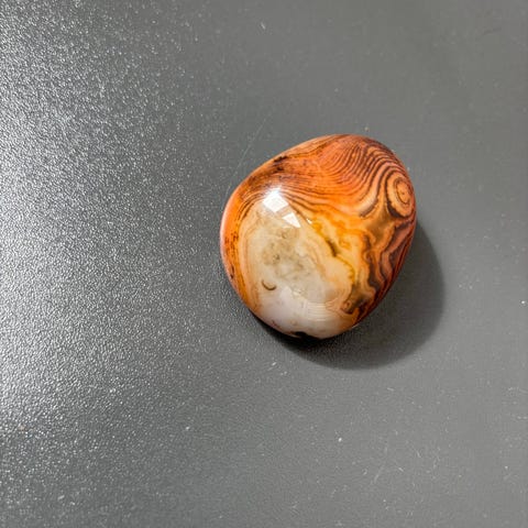 Karneol er en kraftfuld og livlig sten, der symboliserer energi, mod og livsglæde. Den er kendt for sin varme, orange-røde farve og sin styrkende virkning.