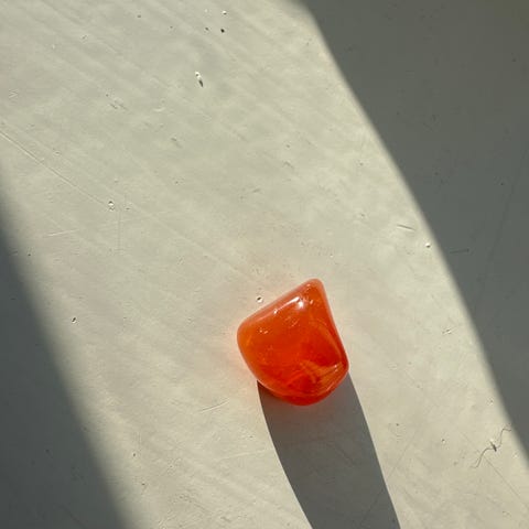 Karneol er en kraftfuld og livlig sten, der symboliserer energi, mod og livsglæde. Den er kendt for sin varme, orange-røde farve og sin styrkende virkning.