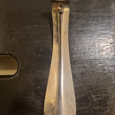 Super smukt skohorn i poleret stål med logo i bunden.