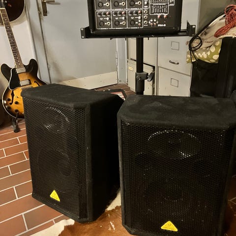 Rack med 3stk Behringer EP2500 effektforstærkere. Equalizer Behringer ULTRAGRAPH PRO 31 bånds stereo grafisk. Alt sammen er testet og virker upåklageligt.