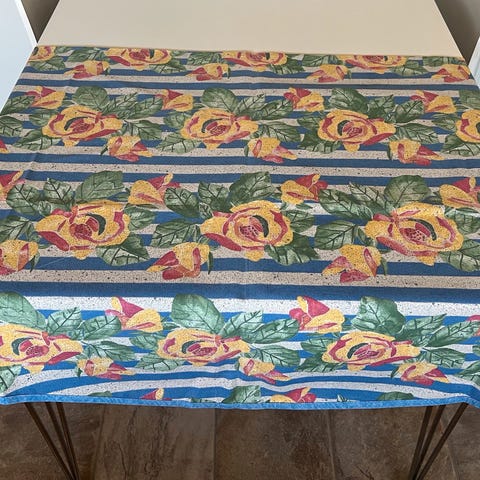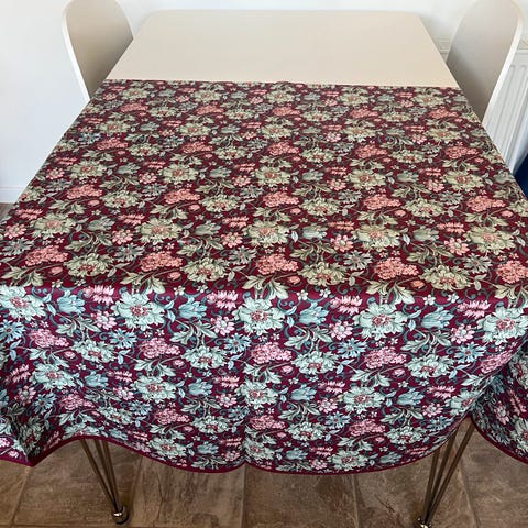Ny oval hvid dug med lyserødt mønster og grønne blade fra Sødahl Danmark.