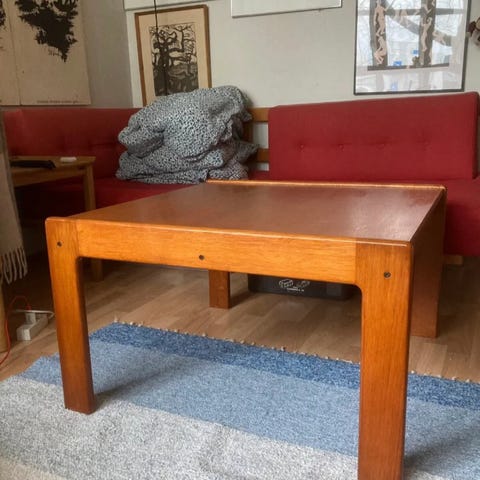 Fremstår overordnet i god stand, med almindelige brugsspor. Et enkelt lille finer afslag på kanten af hylden (se sidste billeder)