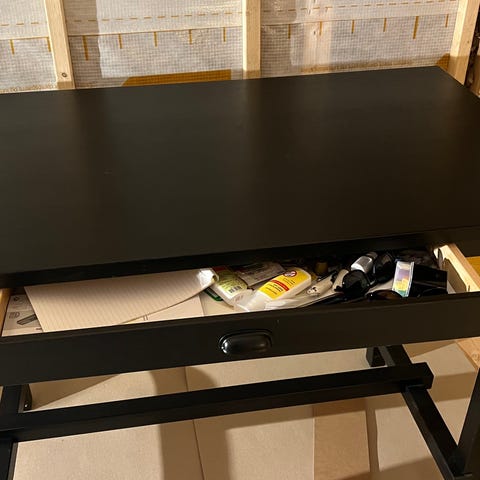 Højbord / køkken-ø i laminat med en underhylde i sort. Bordet er 120 L, 60 B og 93 Høj Egnet til brug i forbindelse med køkken. Evt med kurve under.