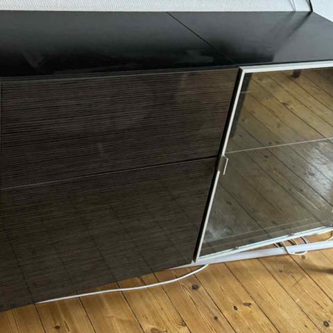 Har også to BESTÅ låger i grå højglans der kan købes med.