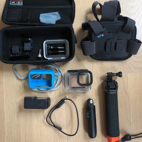 GoPro hero 13 bundle. Inkl. kasse 3 batterier oplader med 2 slags ledninger. Samt memory card. Derudover medfølger dykkerhus samt flyder pind samt div. Fitings.