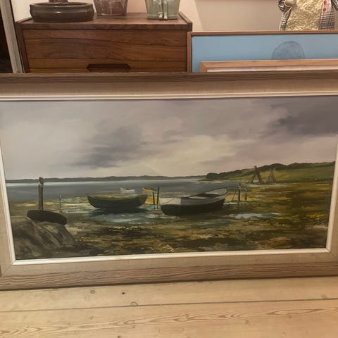 Dette maleri må forestille et sted inde i Københavns havn omkring Toldboderne. Forestillende en slags dampskibe – såkaldte “tramp steamers” / fragtdampere.