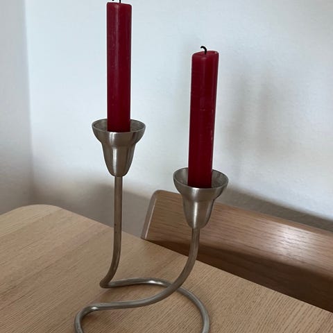 Georg Jensen lysestage i metal designet til vægmontering. Stagerne har plads til to stearinlys og har en enkel, funktionel form.