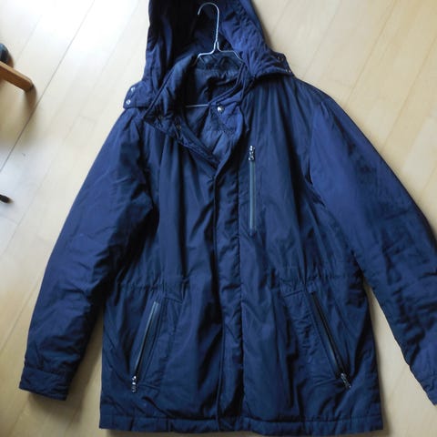 Handy Wear vinterjakke i blå farve, størrelse XL. Jakken er lavet af 100% polyester og designet til både mænd og kvinder. Den har knaplukning og er velegnet til brug i koldere vejrforhold.