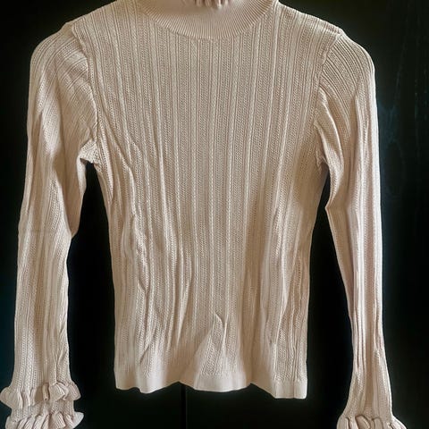 Sælger en super fin ZARA Woman top i rosa/pink blonde med sporty sort ribkant og sort/hvide striber ved kant og manchetter.