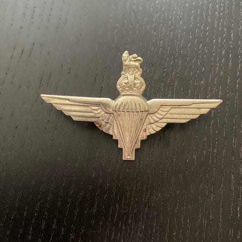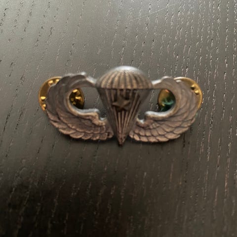 American WW2 Officer`s combined glider/parachute cap badge. 82nd Airborne division. De er solgt på E-bay til 70£.