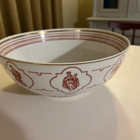 Royal Copenhagen Jubilæumsbowle i porcelæn med en diameter på 15 cm. Skålen er dekoreret med røde motiver og har en særlig udgave markeret med tekst om 100-året for åbningen af Det Kongelige Teater. Kompositionen er udført af Erik Clemmesen. Begrænset oplag på 1500 stk.