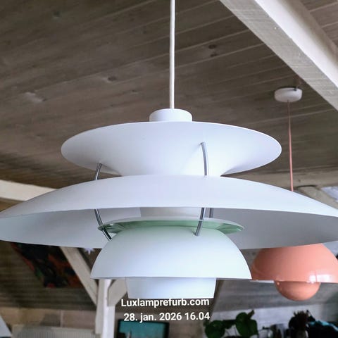 Louis Poulsen PH Lampeskærm Pendel designet af Poul Henningsen. Lampeskærmen er hvid/blå og fremstillet med flere lag, som sikrer diffust lys. Passer til pendelophæng og er velegnet til ophæng i stuer eller spisestuer.