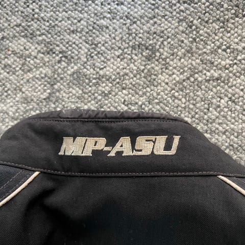 jakke i blå farve. Jakken har knaplukning og elastiske ærmekanter. Den er designet til at give beskyttelse mod vind og vejr