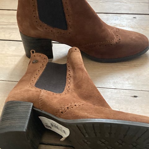 Støvle af spansk mærke Picolinos. I størrelse 40, brun farve. Støvlerne er fremstillet af læder og har en lynlås på indersiden for nem af- og påtagning. Indvendigt foret med flot, mønstret stof. Hælhøjde cirka 5 cm. Produceret i Spanien. (Tamaris kun skrevet pga at mærke skulle vælges)