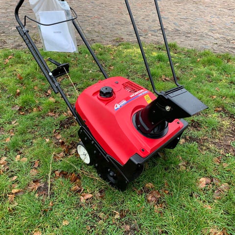 Honda FG201 rotorklipper med motor og håndtag til styring. Maskinen er designet til jordbearbejdning og havearbejde. Udstyret med robuste hjul og en motor, der muliggør effektiv behandling af jordoverflader.