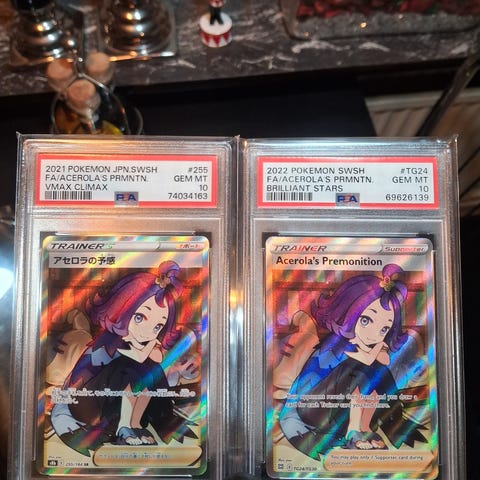 Super lækkert 2017 Burning Shadows Acerola i en PSA 9, og sjældent til udbud. Prisen er fast. Jeg sender helst ud med GLS, og ellers må andet aftales med mig. Mvh Dennis