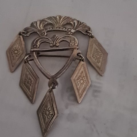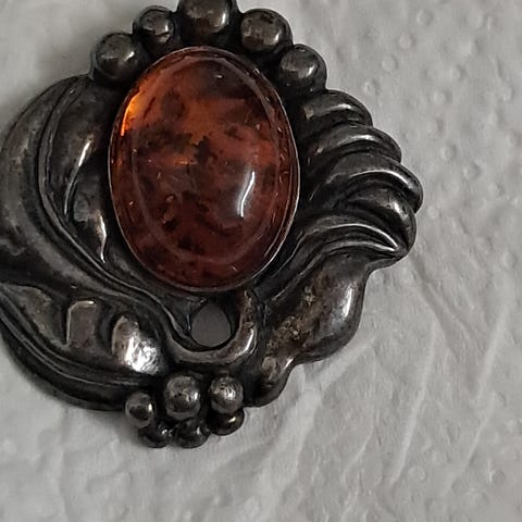 Skønvirke broch sølv 925 45mmx60mm med en stor rav stenog jeg kan ikke læse juvelerens navn, fordi det er for tyndt og der er tre stempel på.