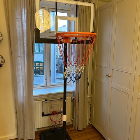 Bestplay basketballkurv på justerbart stativ med hjul og net.