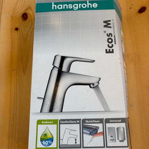 Blandingsbatteri Hansgrohe Ecos M med løft op bundventil. Meget vandbesparende 5 l/min.