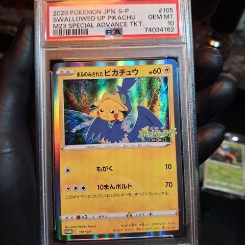 Super lækkert Red & Blue Collection PSA 9 Mint - Pikachu EX Black Star Promo, og er et af de lidt mere heldige eksemplar som der er kommet igennem skæresilden i sin tid, da man pakkede den ud. Og hvis man selvfølgelig kigger på markedet for de raw der florerer rundt omkring:) Den er allerede en del under markedsprisen:)