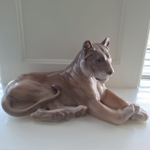 Royal Copenhagen 804 hunløve 2 sort 16 cm høj 31 cm lang design Lauritz Jensen uden skår og afslag