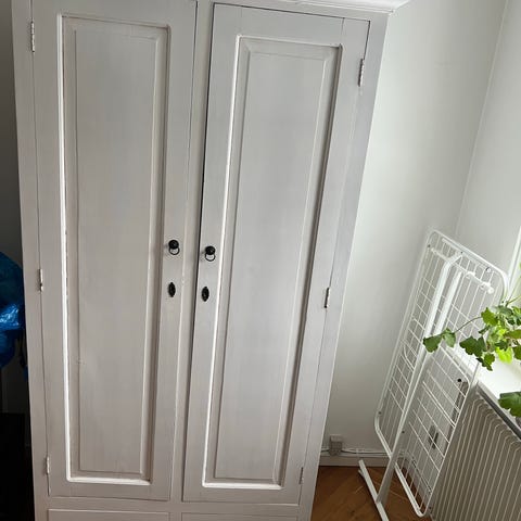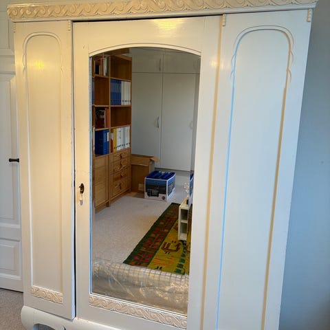 Gammel hvidt klædeskab med spejl
