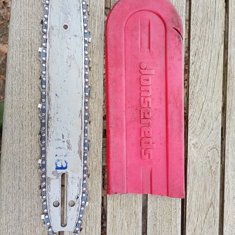 18" sværd, sporbredde 1,5, kædedeling 3/8. Fra Oregon med tilhørende orginal ubrugt kæde fra Husqvarna. Fungerer perfekt.