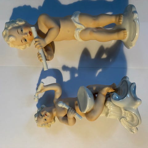 Engel figur med fløjte fremstillet i hvidt materiale. Figuren måler cirka 26 cm i højden og har detaljer som vinger og en fløjte. Velegnet til dekoration i hjemmet.