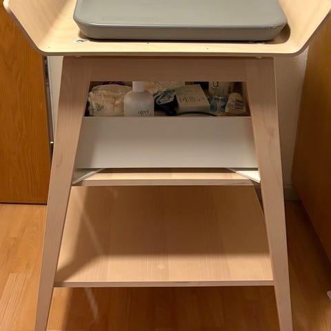 Leander puslebord i træ med beige puslepude