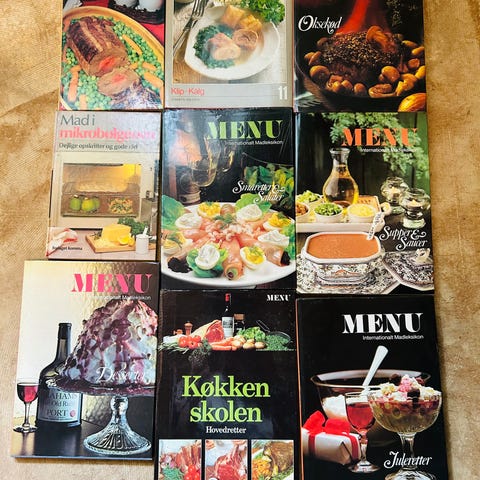 Menu kogebøgernternational madleksikon, MENU, emne: mad og vin, 3 fine kogebøger fra MENU alle 3 som nye